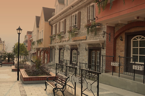 这里也没有忘记突出中国文化的魅力,更没有忘记5.12地震的惨痛。除了法式商业区外,还精心打造了中式商业区、地震纪念公园区、河岸休闲娱乐区、农家体验区、"上书院"等七大休闲体验板块。
