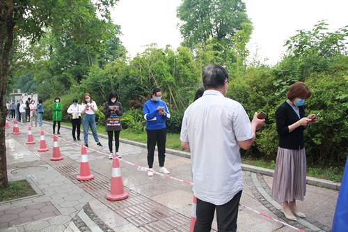 上午10点半,演练正式开始。学生处陈小昌处长担任现场指挥,几十名教职员工扮演学生,通过辅导员的引导,戴好口罩,保持一米间隔排队入校,现场工作人员为学生进行查验健康码、测温、行李消杀,体温正常的学生,丢弃旧口罩,双手清洗消毒后,戴上学校配发的全新口罩进入校园。