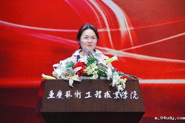 宏宇公司执行董事胡倩女士致辞。她代表宏宇团队全体成员对荣获“宏宇奖教金”的老师们表示祝贺,对学校给予这么好的平台,让企业、教师和学生建立更好的沟通合作渠道,创建一种新的合作模式表示感谢。她希望宏宇公司能与各位老师一道,培养家具外观设计、结构设计,灯光设计,3D动画设计,软件设计制作人员等专业素质人才,欢迎我校学生到公司实习学习,加盟成为公司一员,为重庆早日建成设计之都、为民族家具品牌的崛起贡献力量。