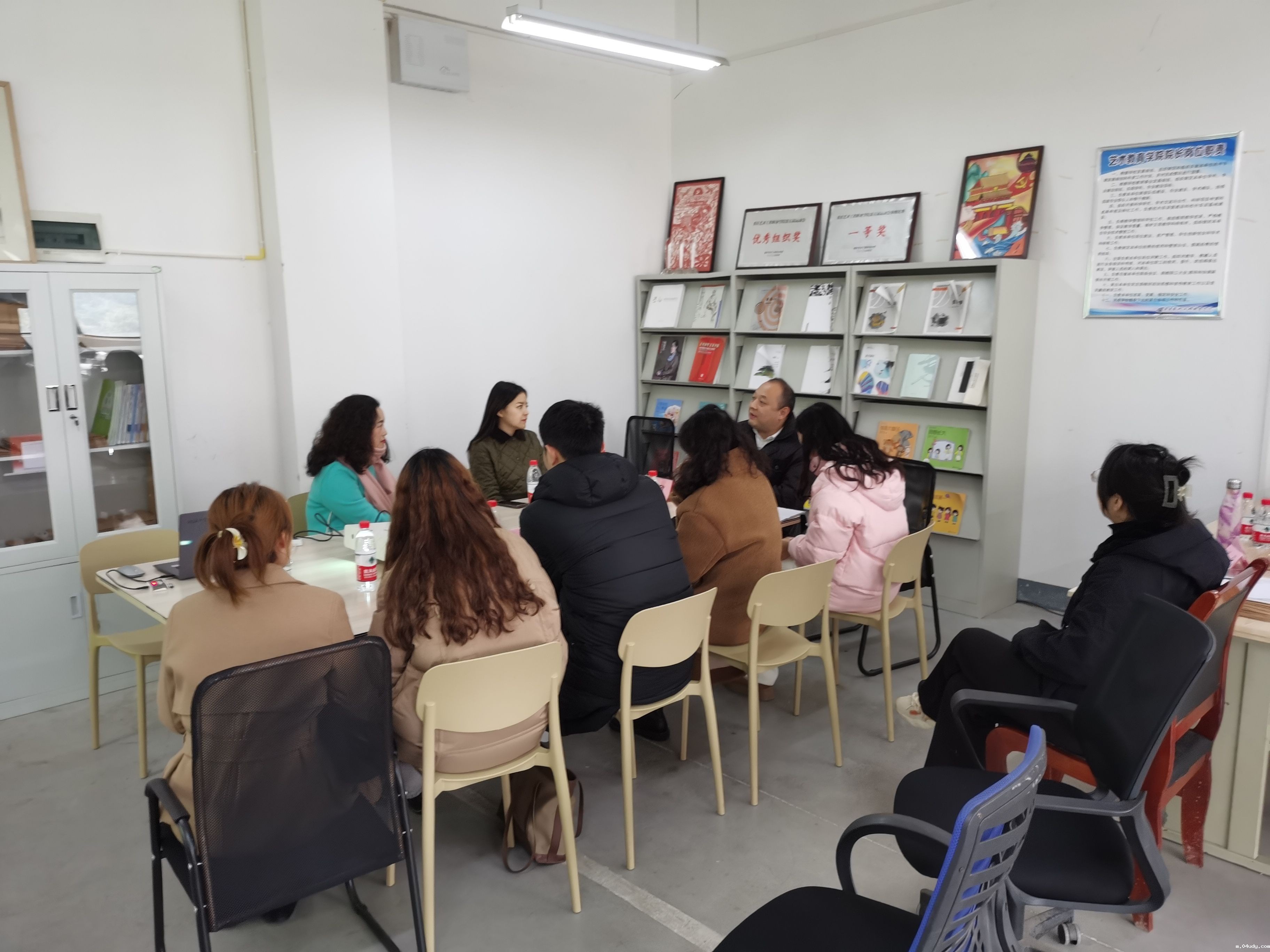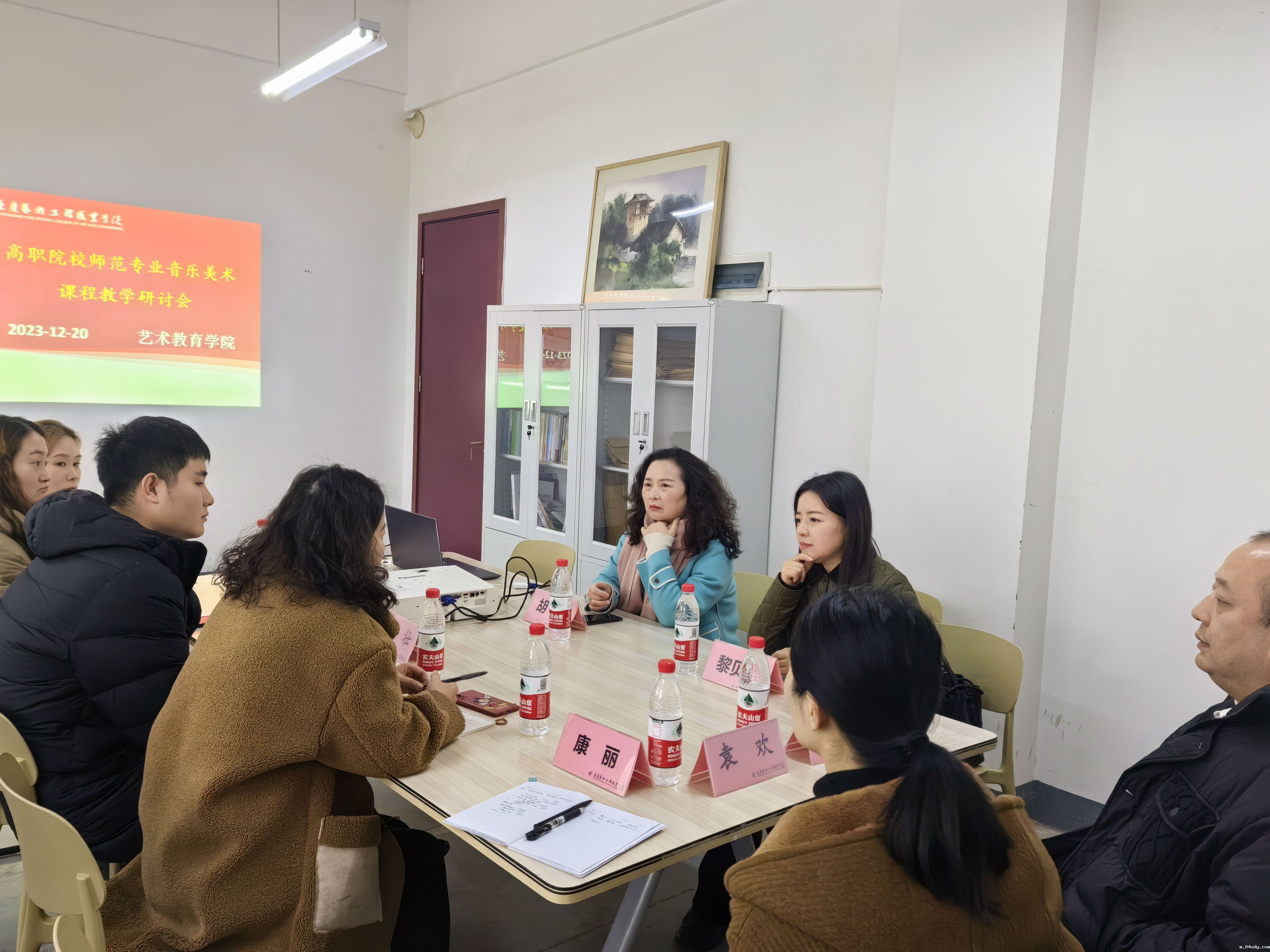 在F203办公室,艺术教育学院组织召开了高职院校师范专业音乐美术课程教学研讨会。杨贤艺院长首先代表学院对蔡其勇院长一行的到来表示热烈欢迎。他表示,此次研讨会有利于提高我院师范专业音乐美术课程教育教学能力。蔡其勇院长介绍了胡苹研究员和黎贝蓁博士的研究方向。