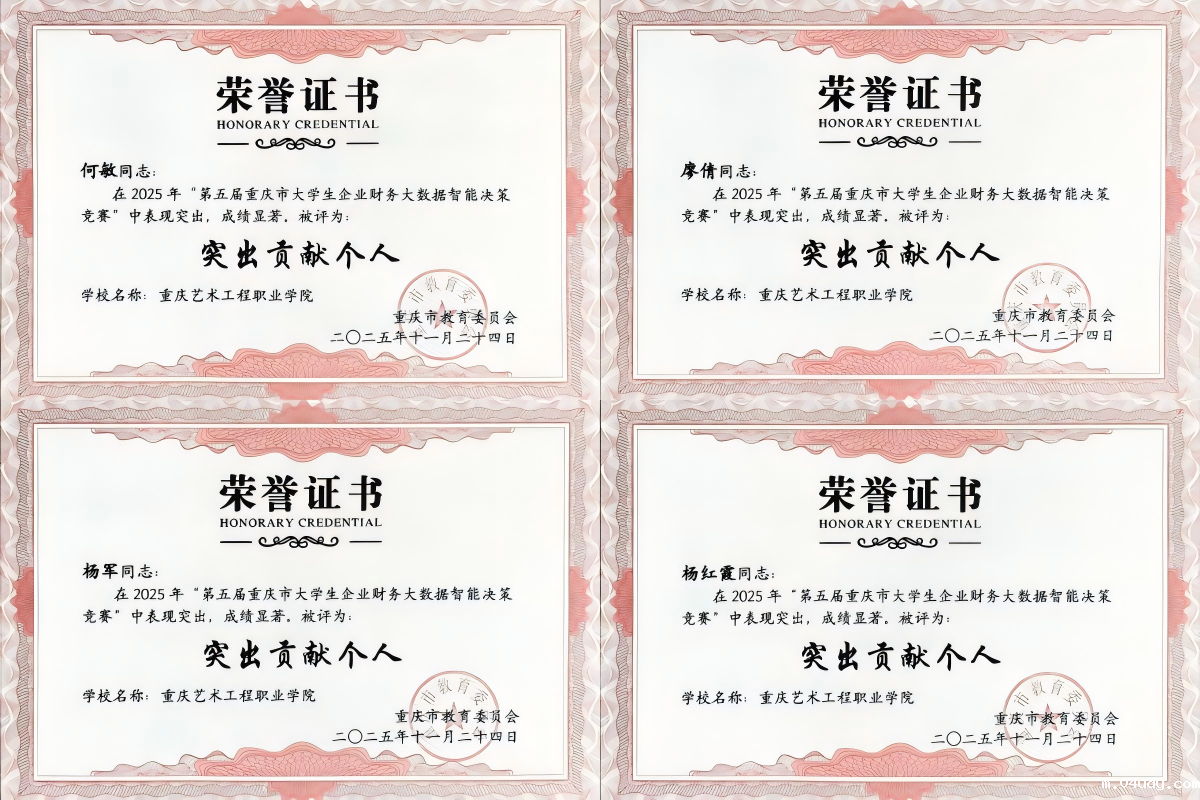 2025年12月4日,第五届重庆市大学生企业财务大数据智能决策竞赛获奖名单揭晓,我校数字经济学院大数据技术专业两支参赛队伍在全市37所院校103支队伍的激烈角逐中脱颖而出,成功斩获双项三等奖,以扎实的专业实力生动诠释了我校“以赛促学、以赛促教”的育人理念与实践成效。