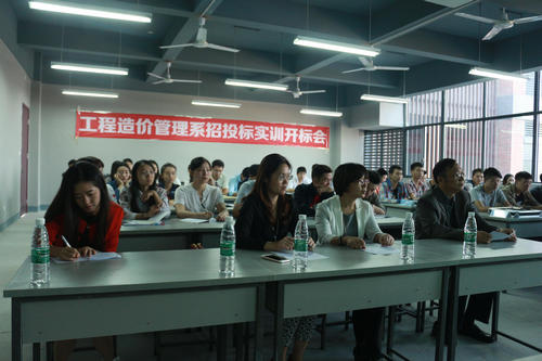 10月15日,星空棋牌苹果版工程造价管理系在铜梁校区举行了2013级招投标实训(高新园拓D二期D5栋公区、D7栋公寓室内装饰工程)开标会议。星空棋牌苹果版副理事长雷秀君、副院长何全先参加本次开标会,工程造价管理系全体老师也都参加了这次会议。